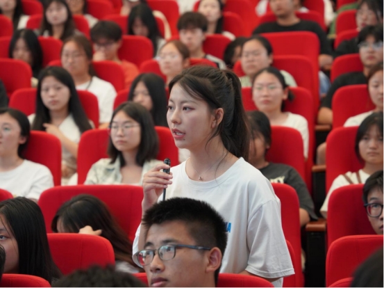 现代农业学院学生代表陈梦云分享了观后心得体会,并向伍小兵提问,伍小兵作了悉心解答。